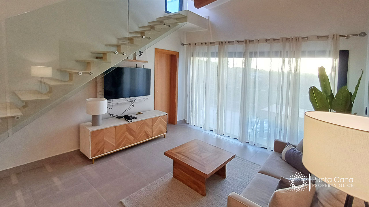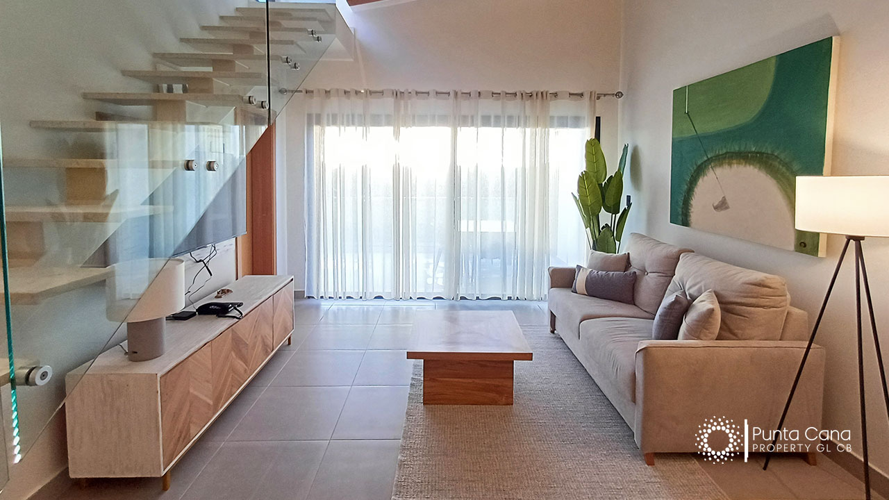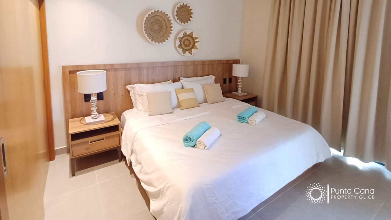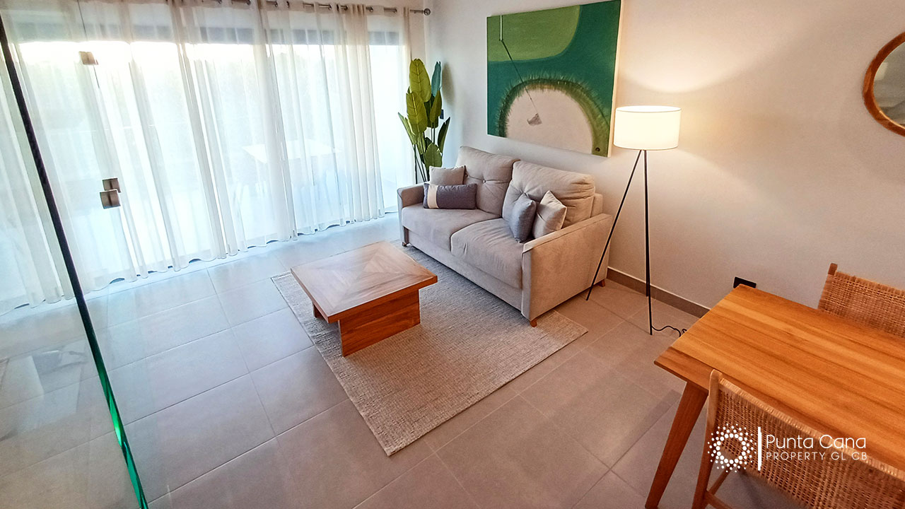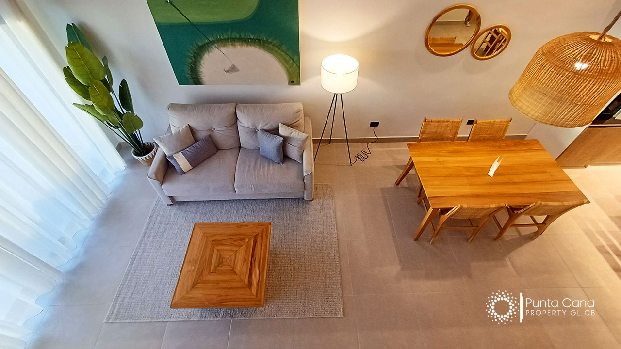 Moderno apartamento en venta ubicado en Cocotal Golf & Country Club con impresionantes vistas al campo de golf y a la piscina, completamente equipado para tu comodidad.